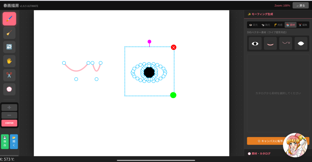svgツールを試運転しています。svgは変幻自在であることから、「ライブトレスツールもイケるんでは!?」という思いつきから実装を考えてました。胸や太股とかに使えたらなぁ。パイズリなどの左右非対称で不均一な図形はどーすんじゃい?って思いましたわ。
